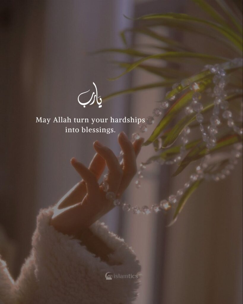 May Allah turn your hardships into blessings.12/02/20263 Related:Handle your hardships with patience…Alhamdulillah for the hardships that…May Allah remove ur burdens & save u… Tags# dua Related Posts Sabr. Because Allah’s timing is always worth the wait.11/02/20262 Comments Alhamdulillah for Islam11/02/20262 Comments Just rely on Allah, and He will provide for you from where you least expect10/02/20262 Comments Ya Allah, I’m tired, make me strong.10/02/20262 Comments Even when nothing makes sense, trust that Allah’s plan is full of wisdom.09/02/2026 8 Days until Ramadan08/02/202610 Comments 3 Comments Aameen ya ALLAH 🤲 ALHAMDOLLILAH 💖 Amin 🤲🤲 ameen 🤲 Leave a ReplyCancel ReplyYour email address will not be published. Required fields are marked * Name * Email * Add Comment * Post Comment