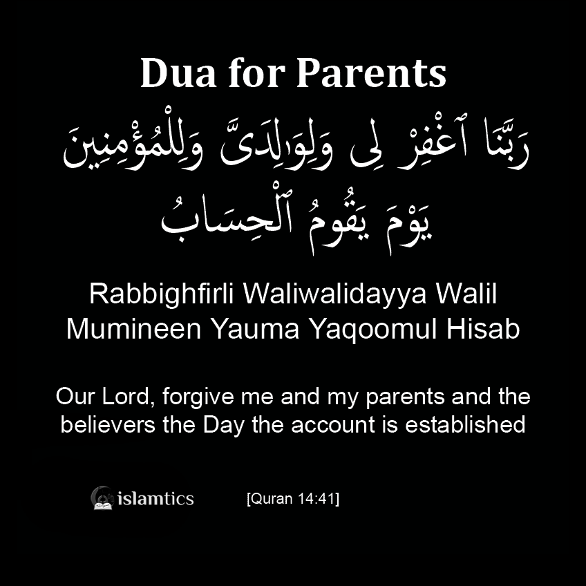 رَبَّنَا ٱغْفِرْ لِى وَلِوَٰلِدَىَّ وَلِلْمُؤْمِنِينَ يَوْمَ يَقُومُ ٱلْحِسَابُ ٤١